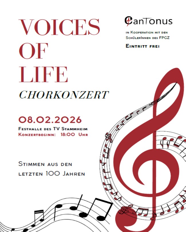 Stimmen aus den letzten 100 Jahren: Der Chor CanTonus gestaltet gemeinsam mit den Schülerinnen und Schülern des FPGZ ein besonderes Chorkonzert.