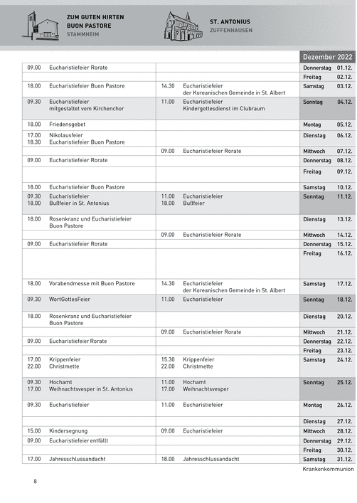 Gottesdienste und Veranstaltungen