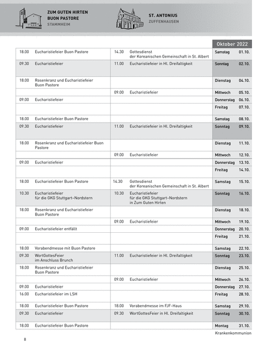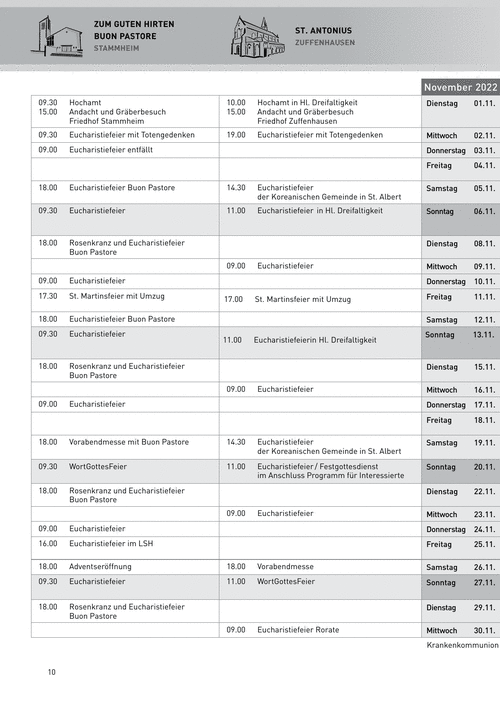 Gottesdienste und Veranstaltungen