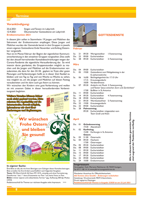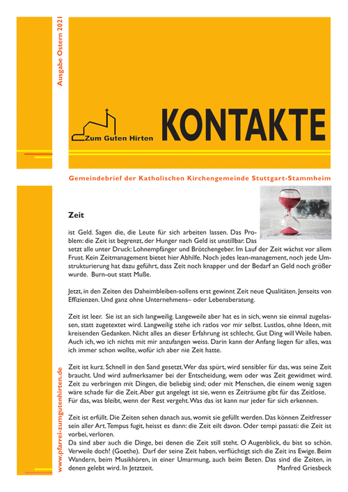 Die Kontakte Ausgabe als pdf zum Herunterladen.